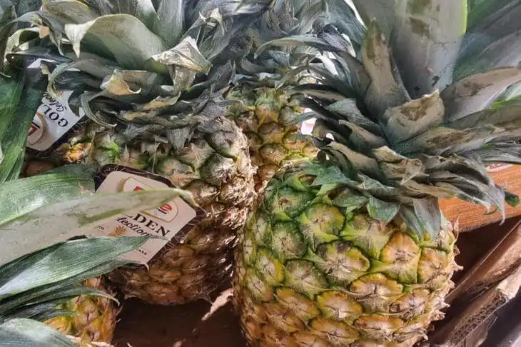 Toinen merkki on kuoren väri. Kypsässä ananaksessa se on kullankeltainen, tasalaatuinen, ilman vihreitä pisteitä. Vihreä ananas ei kypsy kotona; se pysyy hapana riippumatta siitä, kuinka säilytät sen. Keltainen väri on tae makeudesta.