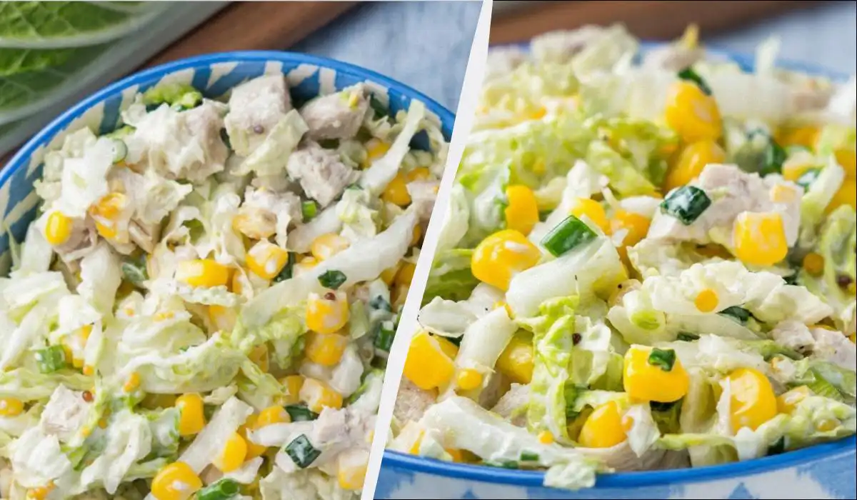 Helposti syötävä salaatti kaalista, kanasta ja maissista ei voisi olla helpompaa valmistaa.