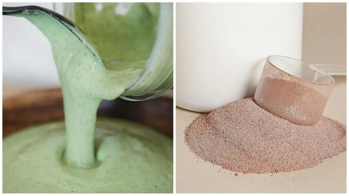 Proteiinin valmistus / Kollaasi: My, kuva: Pexels/Supplements On Demand, Pexels/Nicola Barts