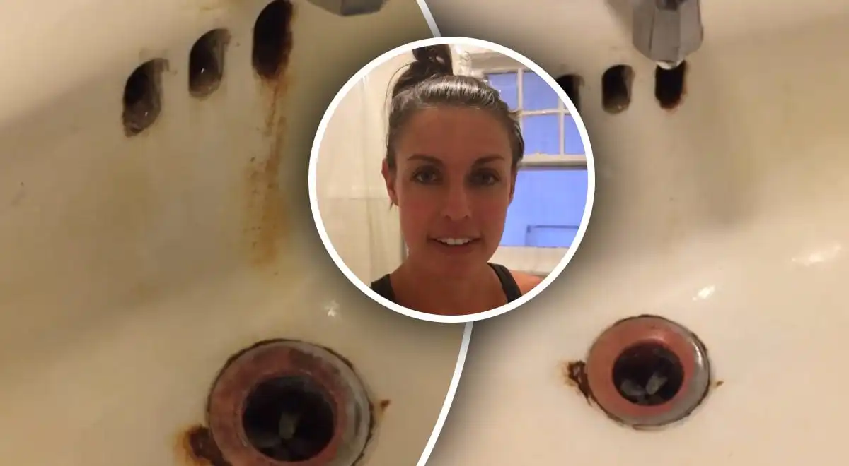 ”Näytän sinulle, kuinka voit poistaa ruostetahrat kylpyhuoneesta. Hammastahna sisältää hankausaineita, joten se puhdistaa ja kiillottaa. Kun aloitat hankaamisen, näet tahrat alkavan hajota. Tuo tahra on ollut siellä vuosia”, sanoi videon luoja.