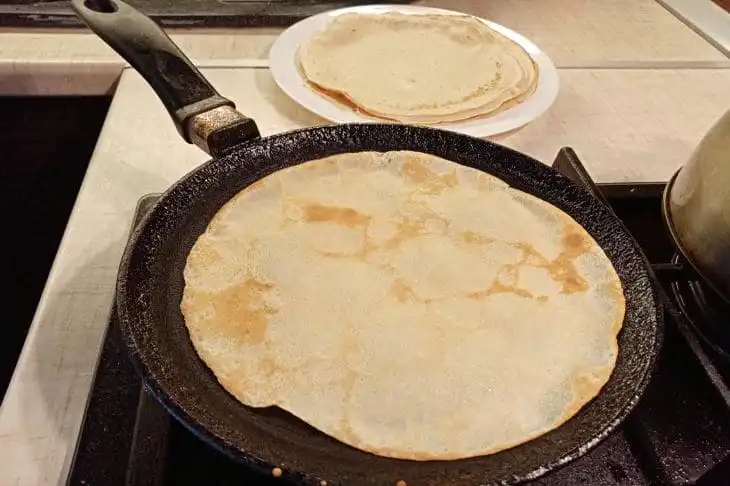 Kenen pannukakkuista tulee aina täydellisiä, hän näytti paistinpannun: vanhaa valurautaa, joka on palvellut häntä 30 vuotta. Hän ei koskaan pese sitä saippualla, hän vain pyyhkii sen suolalla ja voitelee sen öljyllä, ja pannukakut irtoavat kuin kellokoneisto.