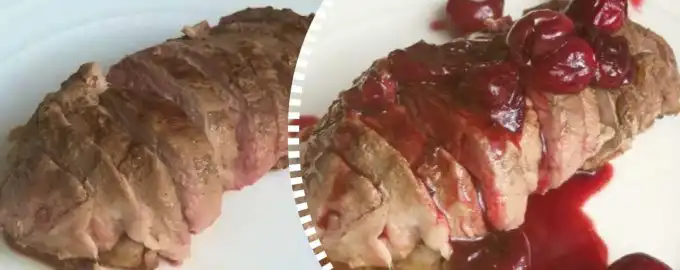 Ankanrintaen kypsentäminen kirsikkakastikkeella kestää vain 25 minuuttia. Linkki kopioitu Ankanrintaresepti kirsikkakastikkeella / Kollaasi: My, kuva