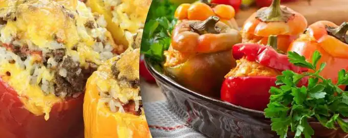 Resepti täytetyille paprikoille mehukkaalla täytteellä. Linkki kopioitu Täytetyt paprikat – resepti / kollaasi: My, kuva: depositphotos.